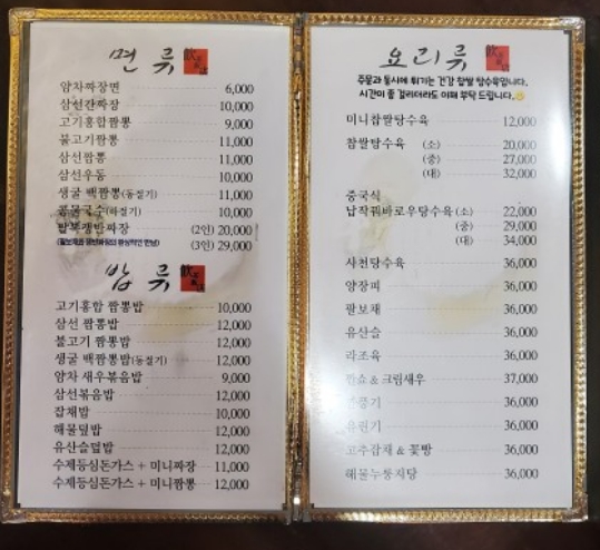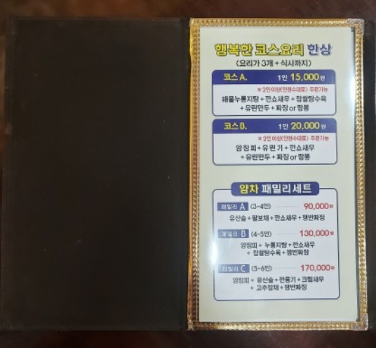 행복한 코스요리로 떠오르는 중화요리 맛집입니다. 1인 15,000원에 ( 해물누룽지탕 + 깐쇼새우 + 찹쌀탕수육 + 짜장 or 짬뽕 )를 즐길 수 있습니다. 기본적으로 짜장, 짬뽕도 맛이 있는 집입니다. 배달을 안 하는 만큼 홀에 오는 손님에게 최선을 다하는 집입니다. 적당한 가격에 코스요리를 즐겨보세요.