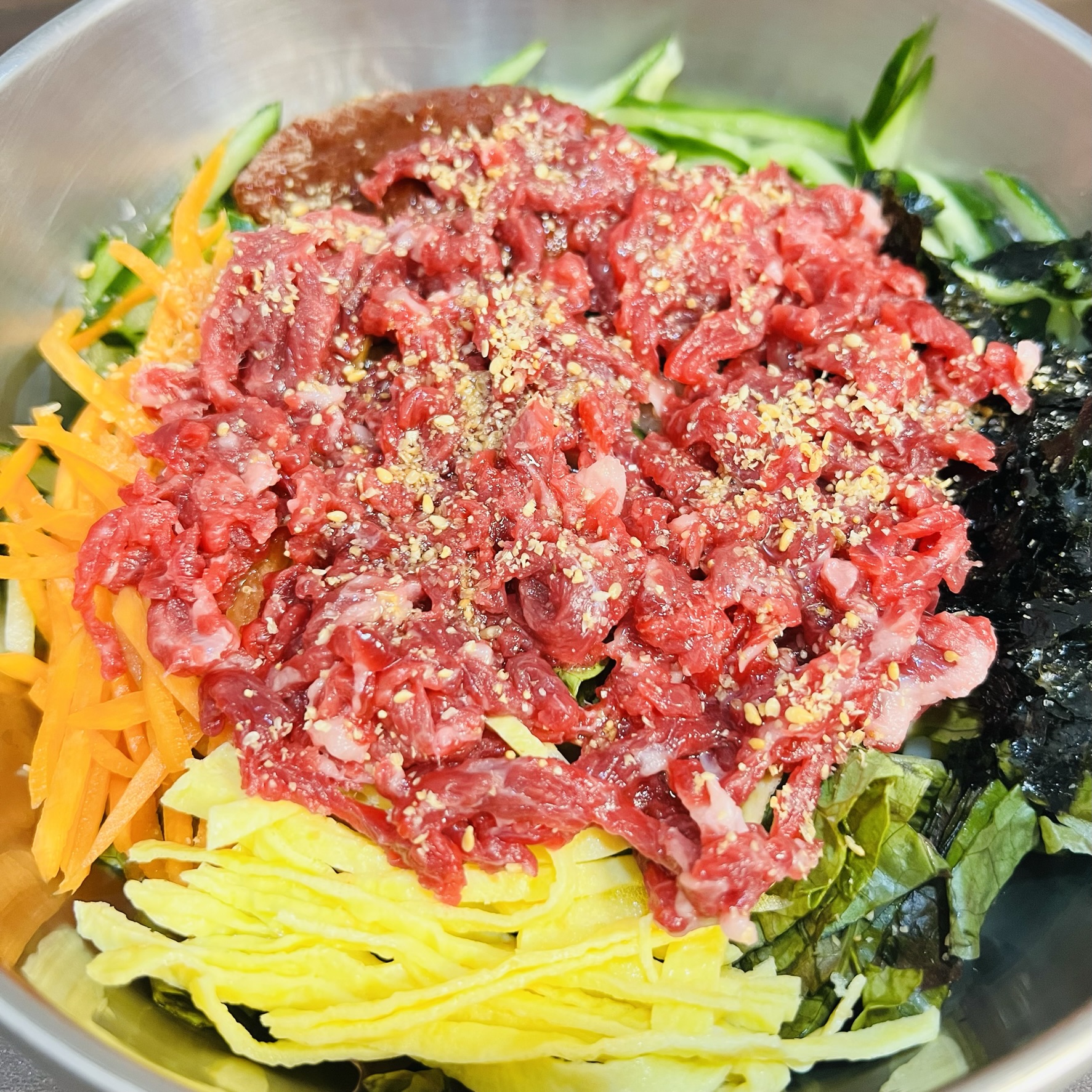 중소벤처기업부 2019년도 함평군 1호 "백년가게"로 선정된 맛집입니다. 함평한우 생고기와 육회, 낙지, 홍어 전문점입니다. 다른 메뉴다 다 맛이 있지만 이곳에 추천메뉴는 찐생비 입니다. 당일 작업한 함평천지한우 생고기 1인분이 밥 위로 올라와 있는 진짜 생고기 비빔밥입니다. 기존의 생고기 비빔밥에 올라오는 채 썰어진 소고기와는 다르게 널찍한 소고기가 듬뿍 올라와있습니다. 소고기를 도축하는 평일에만 한정수량으로 맛볼 수 있으니 일찍 방문하시기 바랍니다.